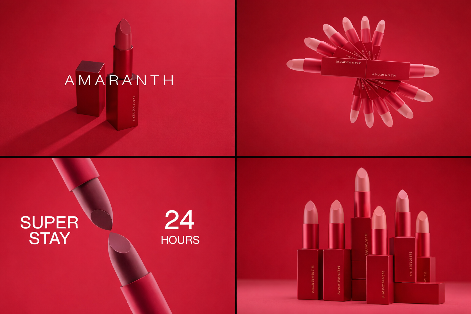 Dzięki zbliżeniom na matową teksturę i precyzyjne krawędzie opakowania, marka Amaranth zyskała prestiżowy, segmentowy wizerunek premium
